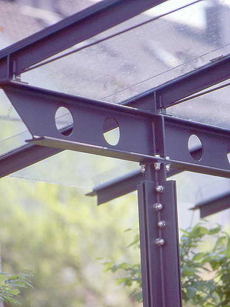 Detail Vordach: Geschraubte Trägerkonstruktion